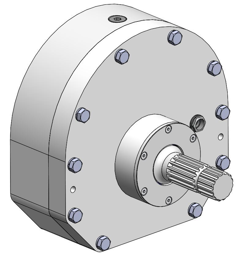 Caja multiplicadora para uso agrícola, factor de multiplicación 1-3. Muy reforzada. Entrada eje 20 estrías, salida a bomba hidráulica.